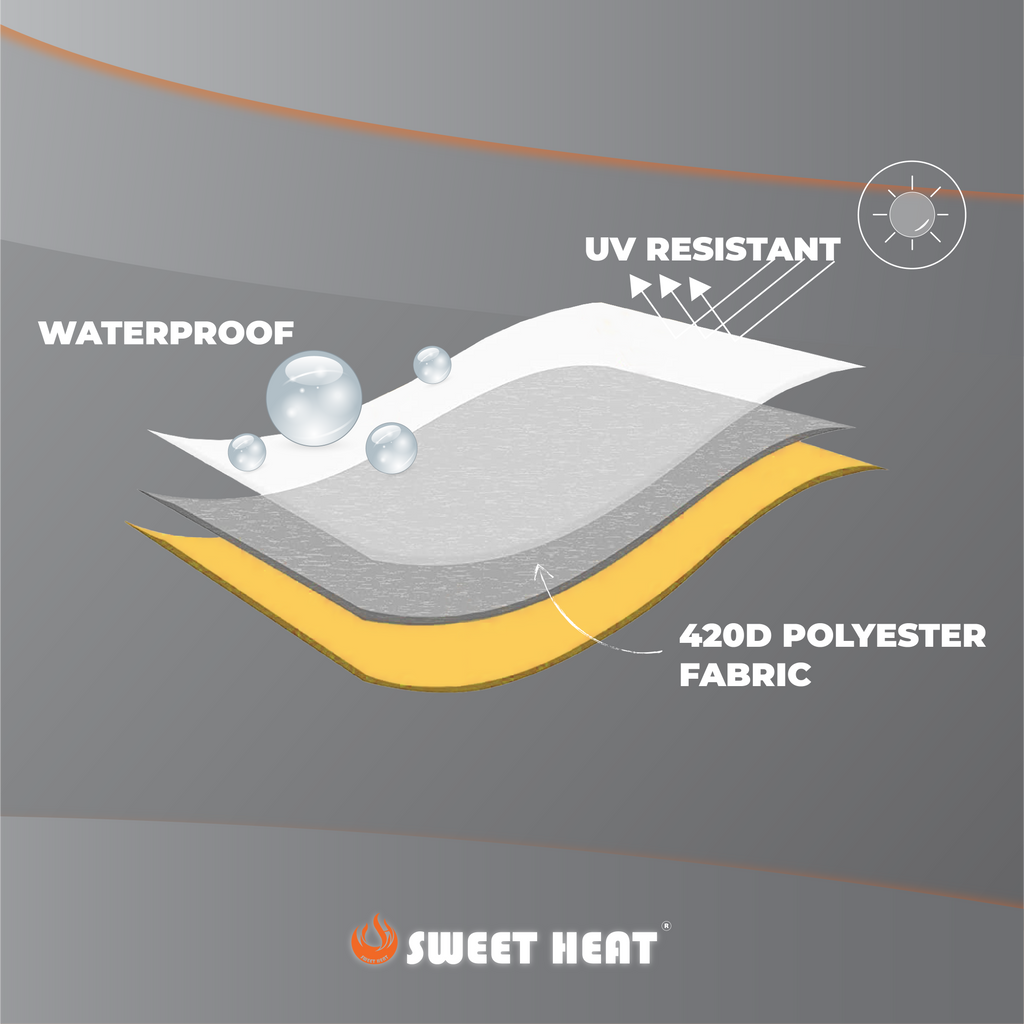The fabric is made of commercial grade quality and can withstand the outdoor elements with waterproof and UV resistant features built in. Protect your heaters with our custom covers so you can continue enjoying your outdoor space!